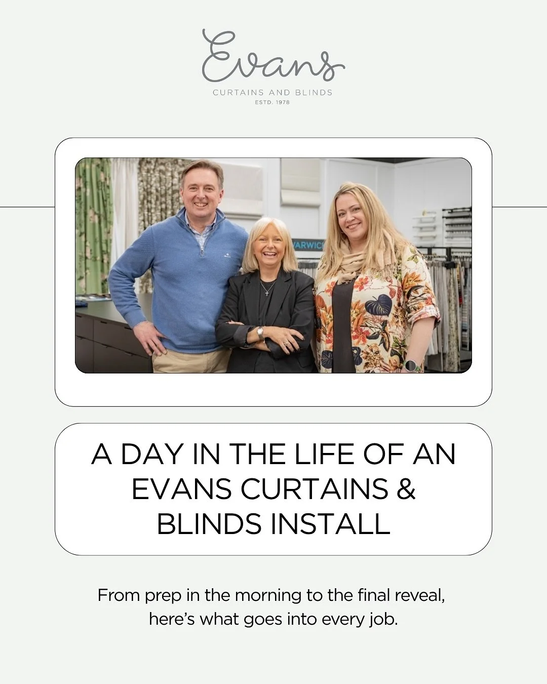 As a family business, you will be dealing directly with the owners. We take the time to really listen and understand your needs. We don’t have a ‘one size fits all’ approach – you are unique. If we need to visit you multiple times in order to find the exactly the right fabric or colour – we will.